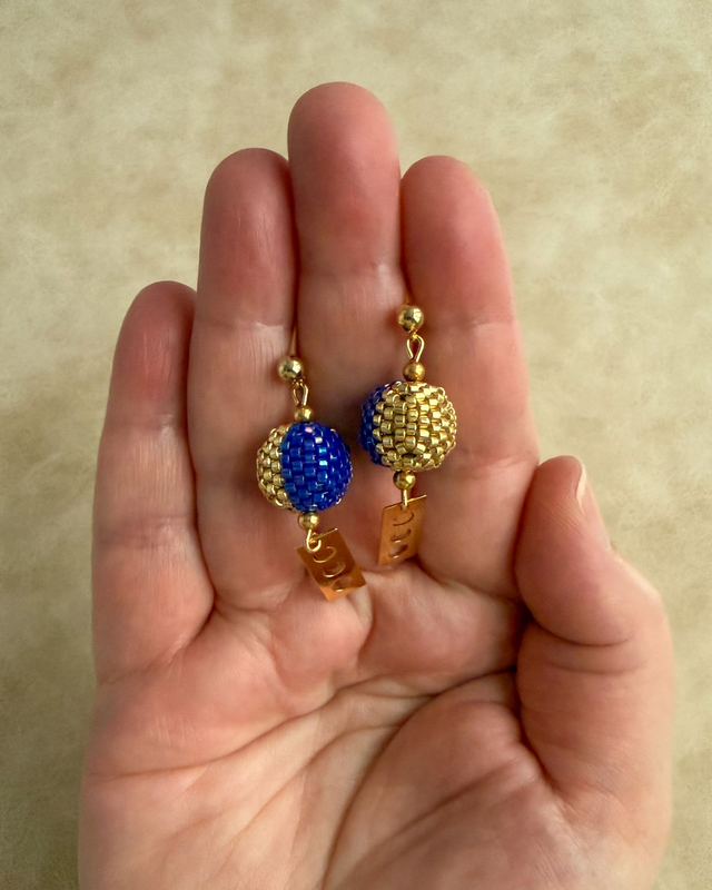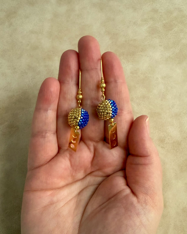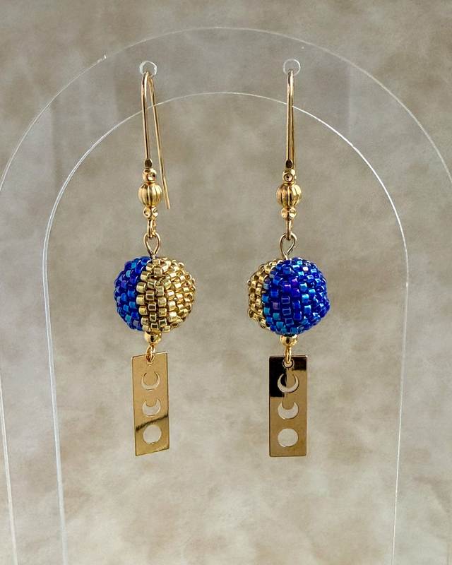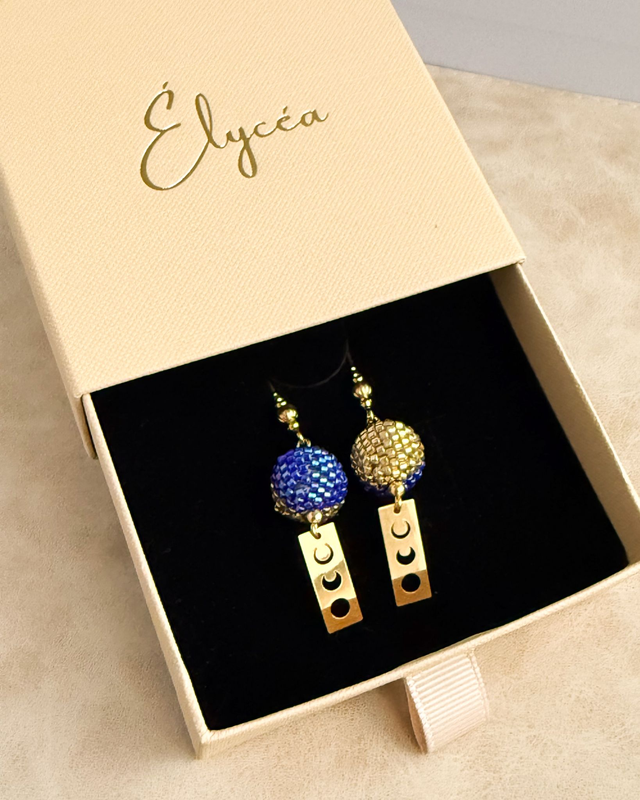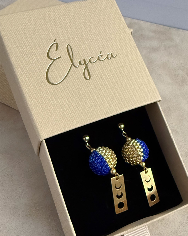 Phases Bleues Dorées - Boucles d'oreilles tissées main