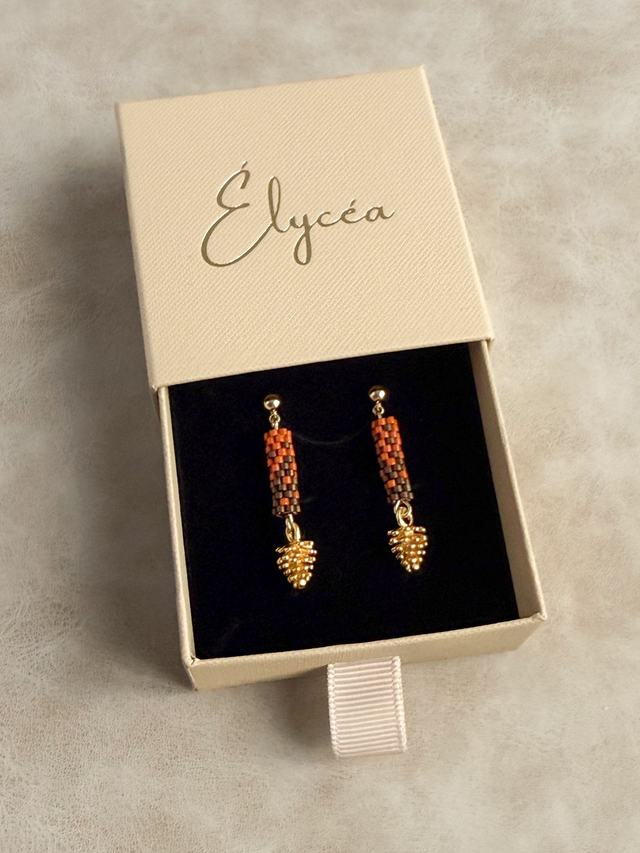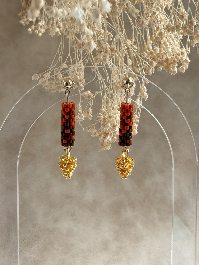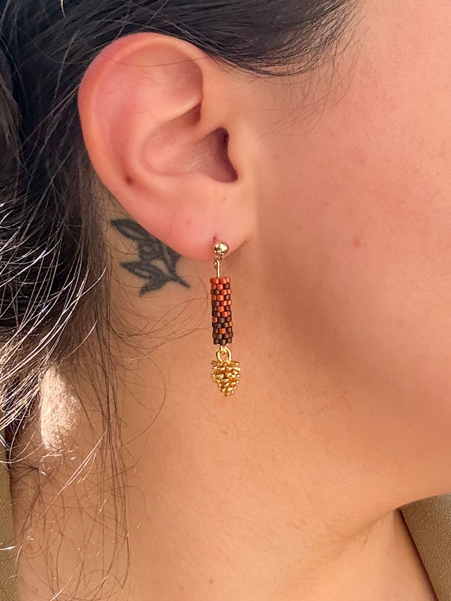 En vous grandit tout ce que vous pouvez devenir. Cette pomme de pin dorée porte en elle mille possibles, comme les graines d'un nouveau départ. Une heure de tissage brickstitch traditionnel pour créer ce cylindre de perles qui accompagne vos premiers pas vers votre épanouissement.